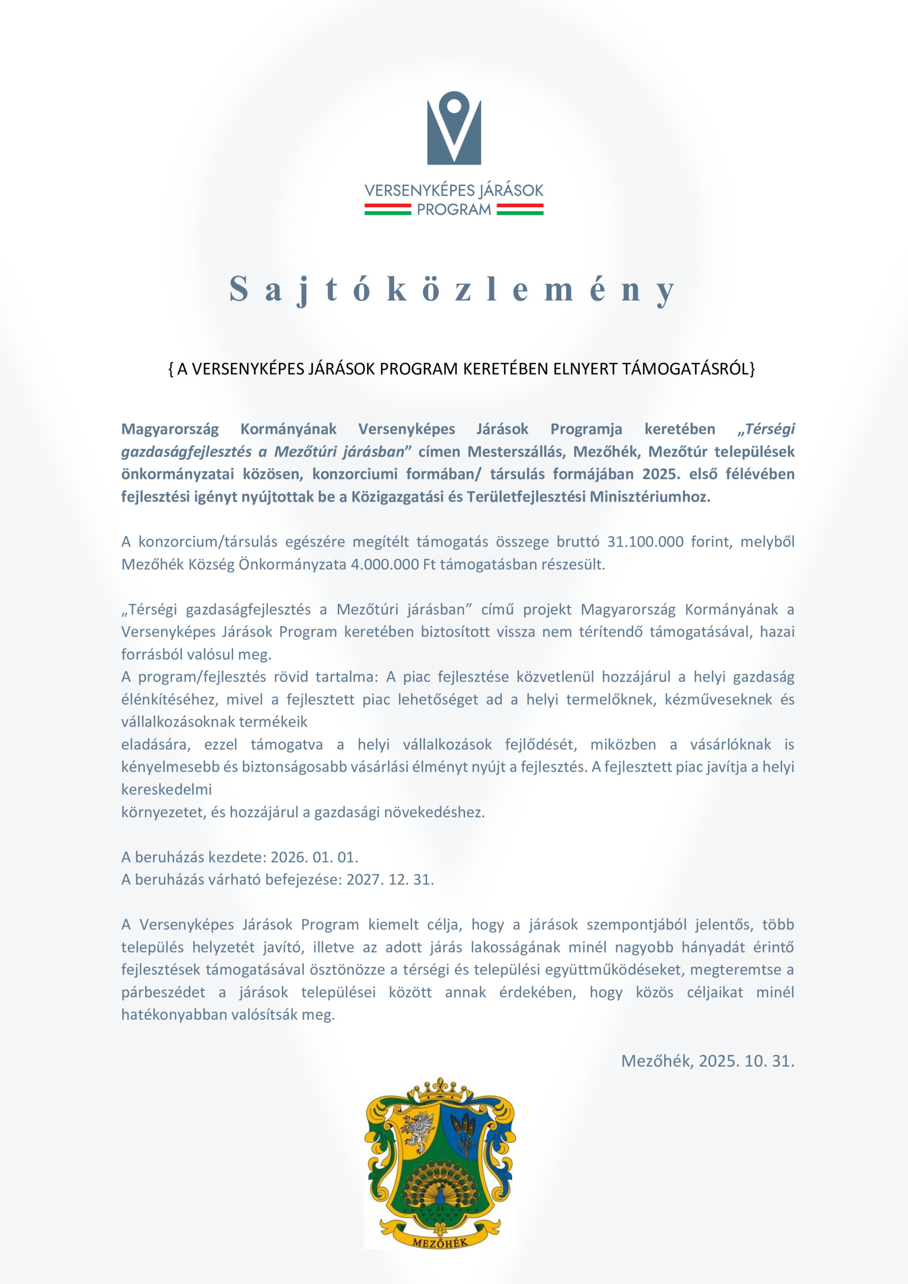 Magyar Falu Program – Önkormányzati tulajdonú ingatlanok fejlesztése, önkormányzati feladatellátáshoz kapcsolódó beszerzések – 2025.